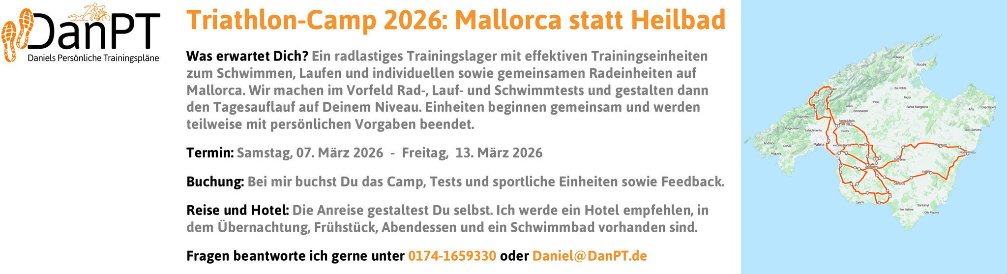 Im Jahr 2026 werde ich nur ein Frühjahrs-Camp anbieten können und werde das Rad-Camp und das Triathlon-Camp als "radlastiges Triathlon-Camp" durchführen.